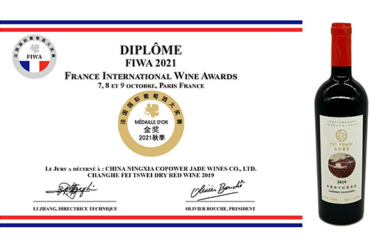 2021秋季 FIWA法國(guó)國(guó)際葡萄酒大賽長(zhǎng)和翡翠斬獲金獎(jiǎng)